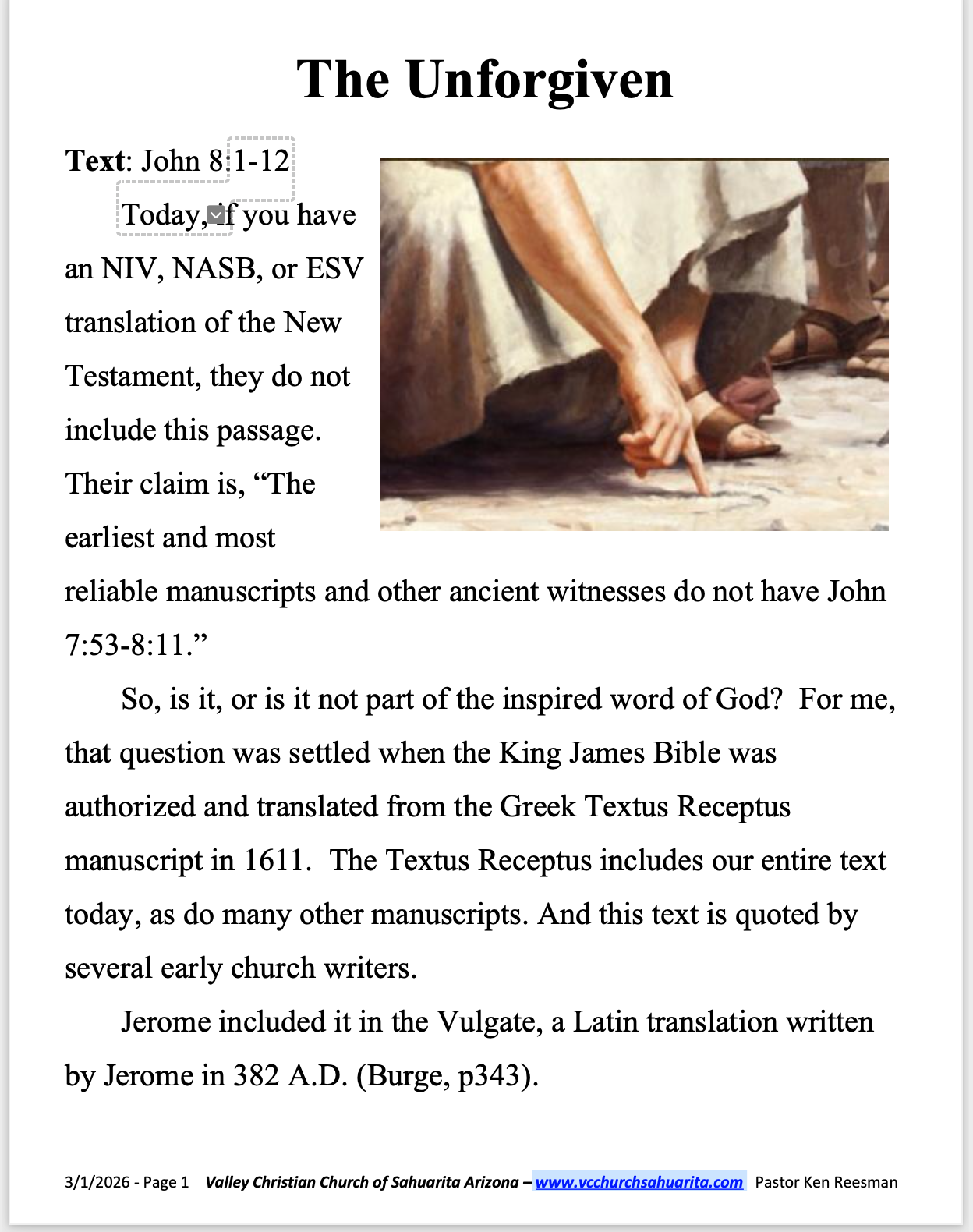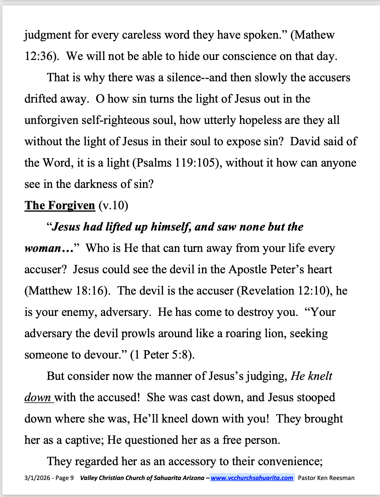 SUNDAY MESSAGE MARCH 1, 2026