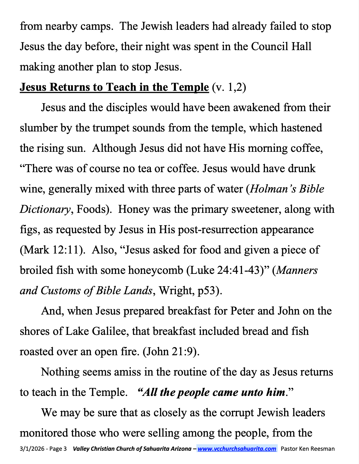 SUNDAY BIBLE SCHOOL MARCH 1, 2026