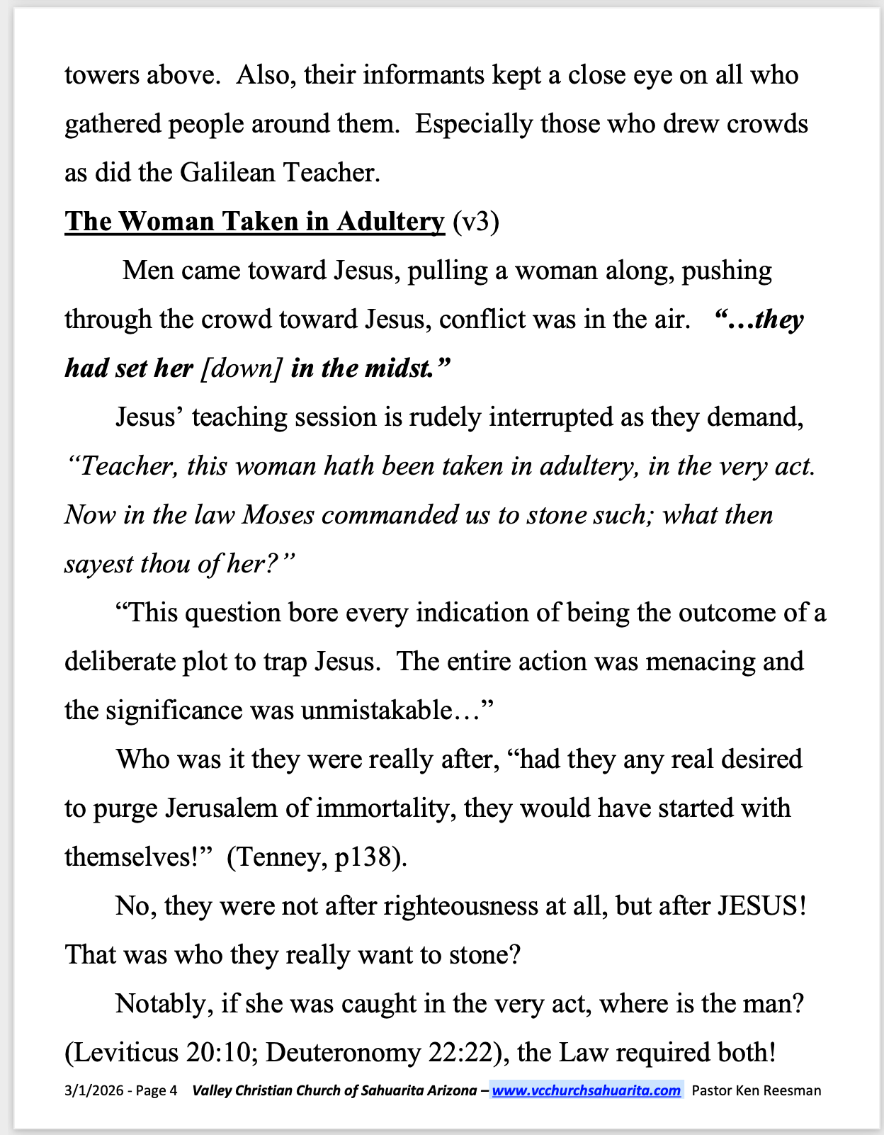 SUNDAY BIBLE SCHOOL JANUARY 4, 2026