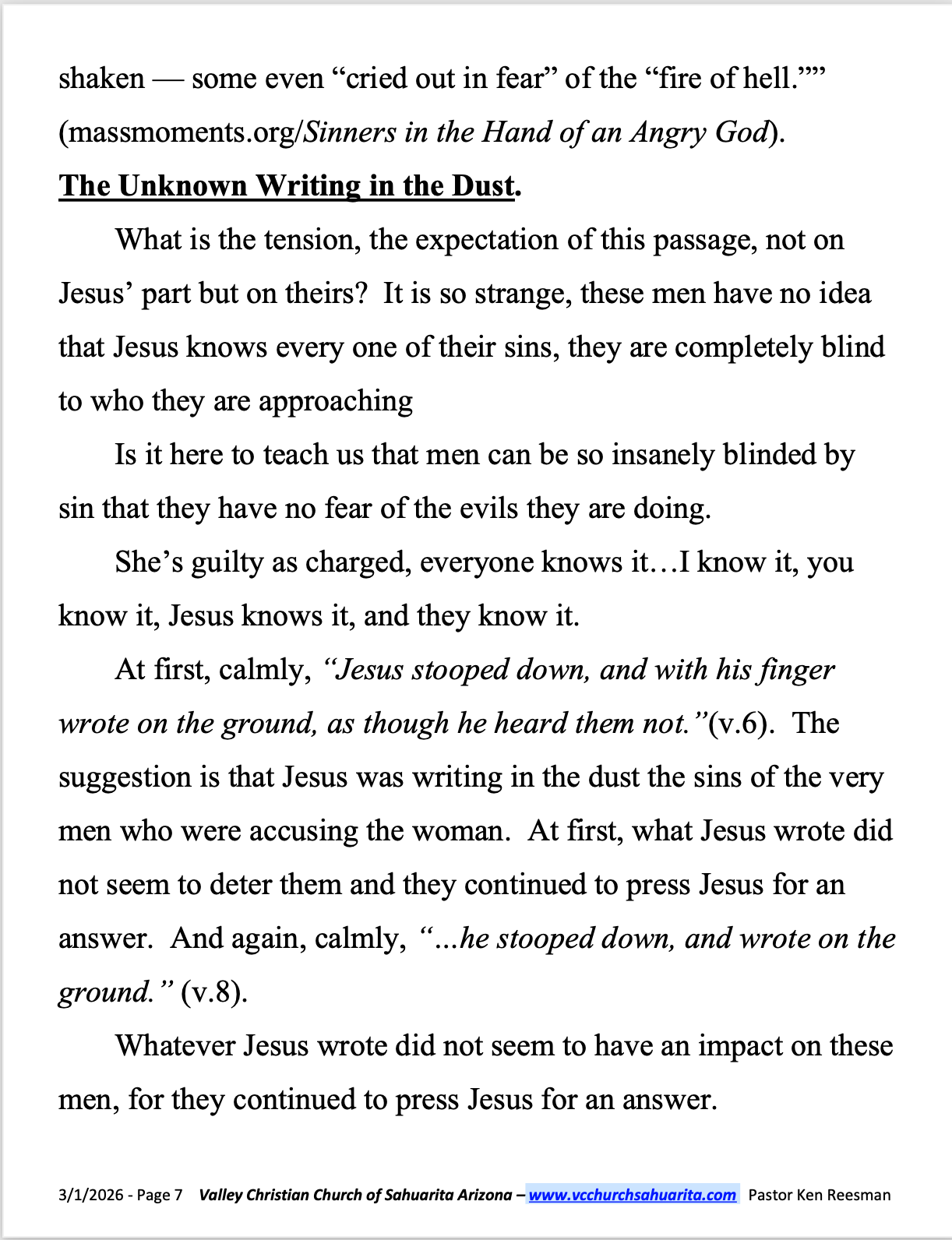 “Our Valley Christian Church website will keep you informed and up to date with our Sunday Message Video and VCC News. You will be able to view pictures and videos of Our Fellow Christians in keeping our VCC Family a Loving Congregation.”