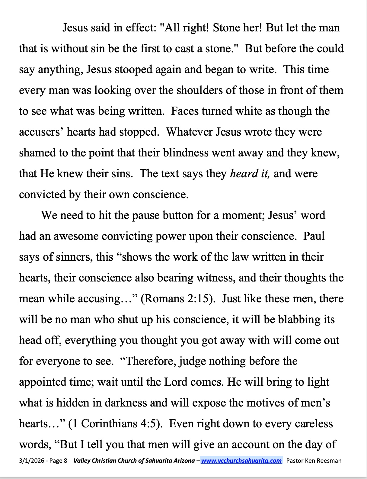 SUNDAY MESSAGE JFEBRUARY 8, 2026