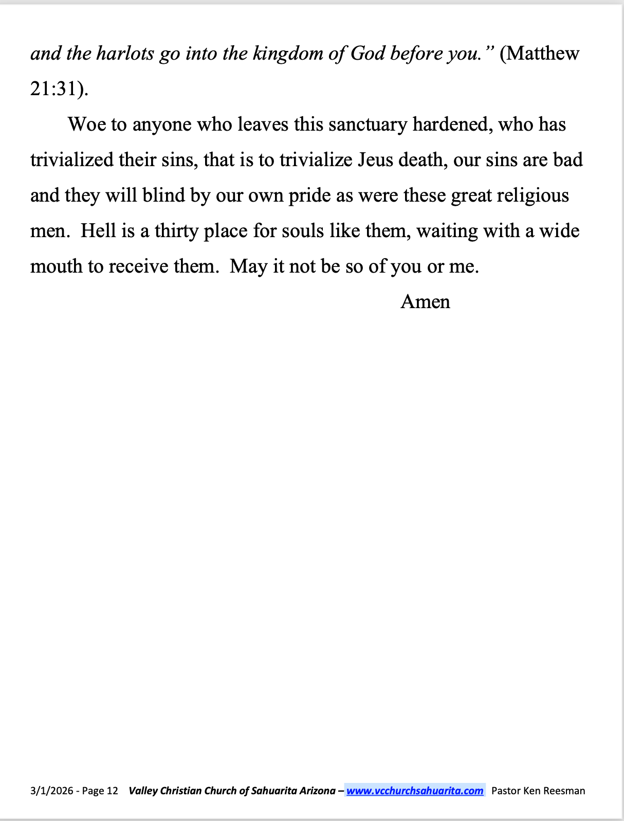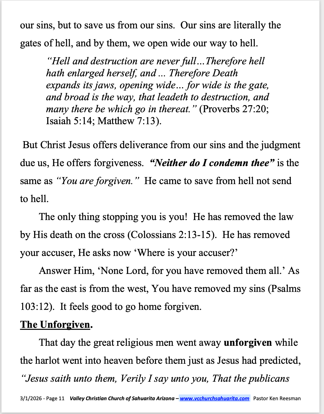 Pastor: Ken Reesman