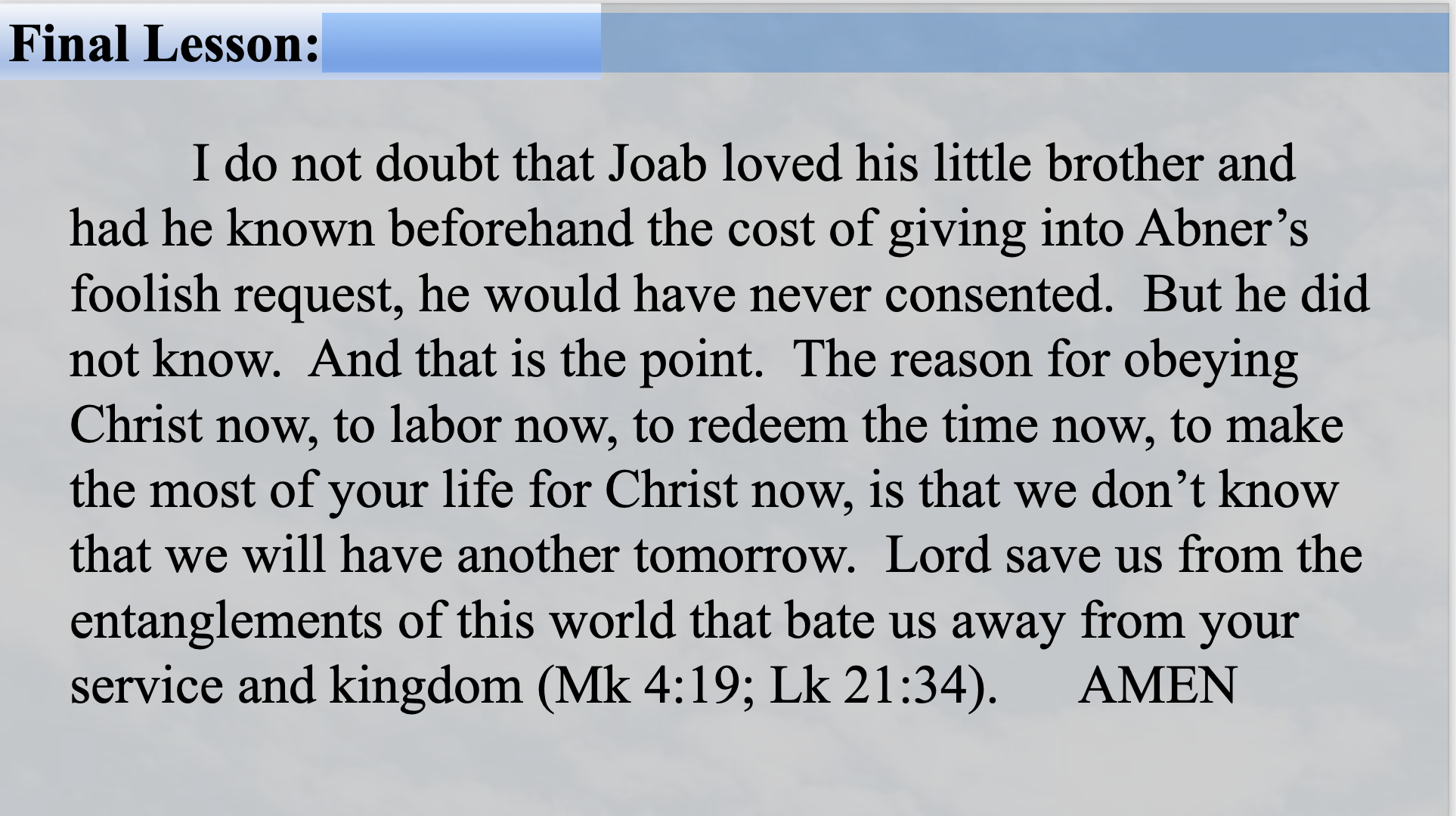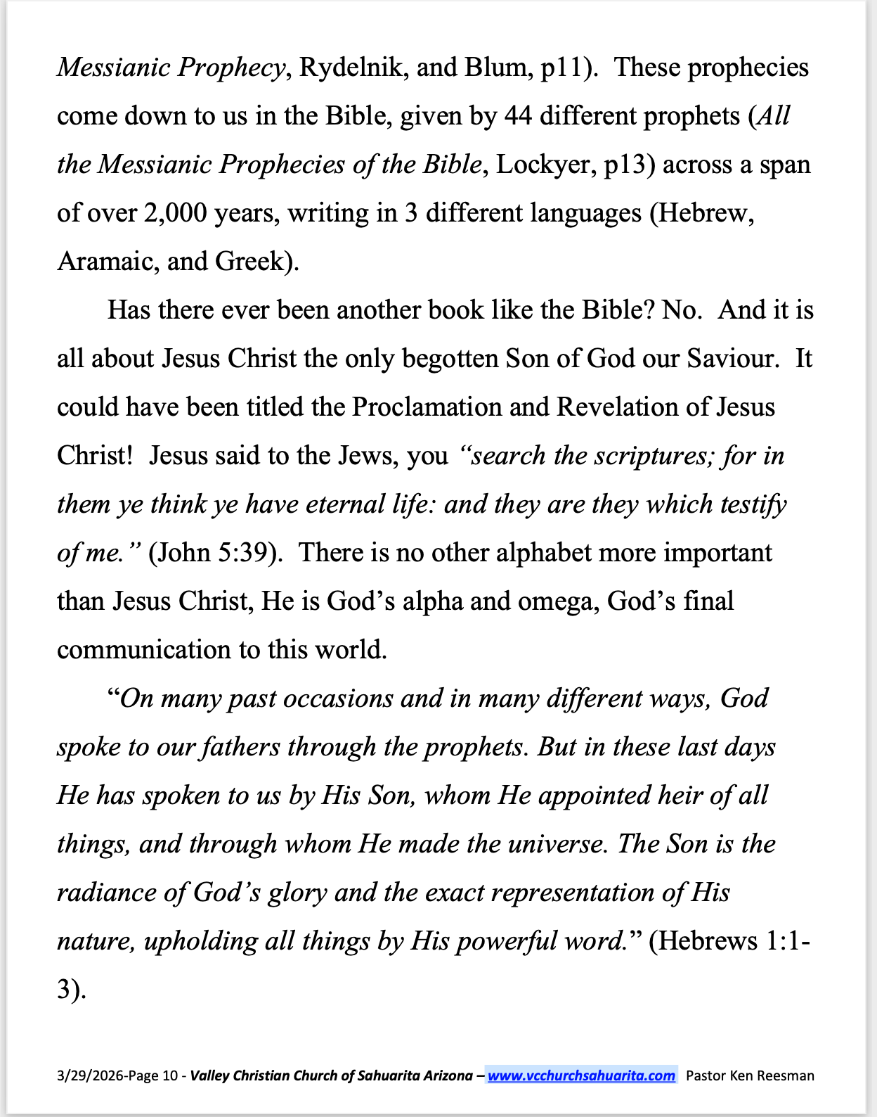SUNDAY BIBLE SCHOOL JANUARY 25, 2026
