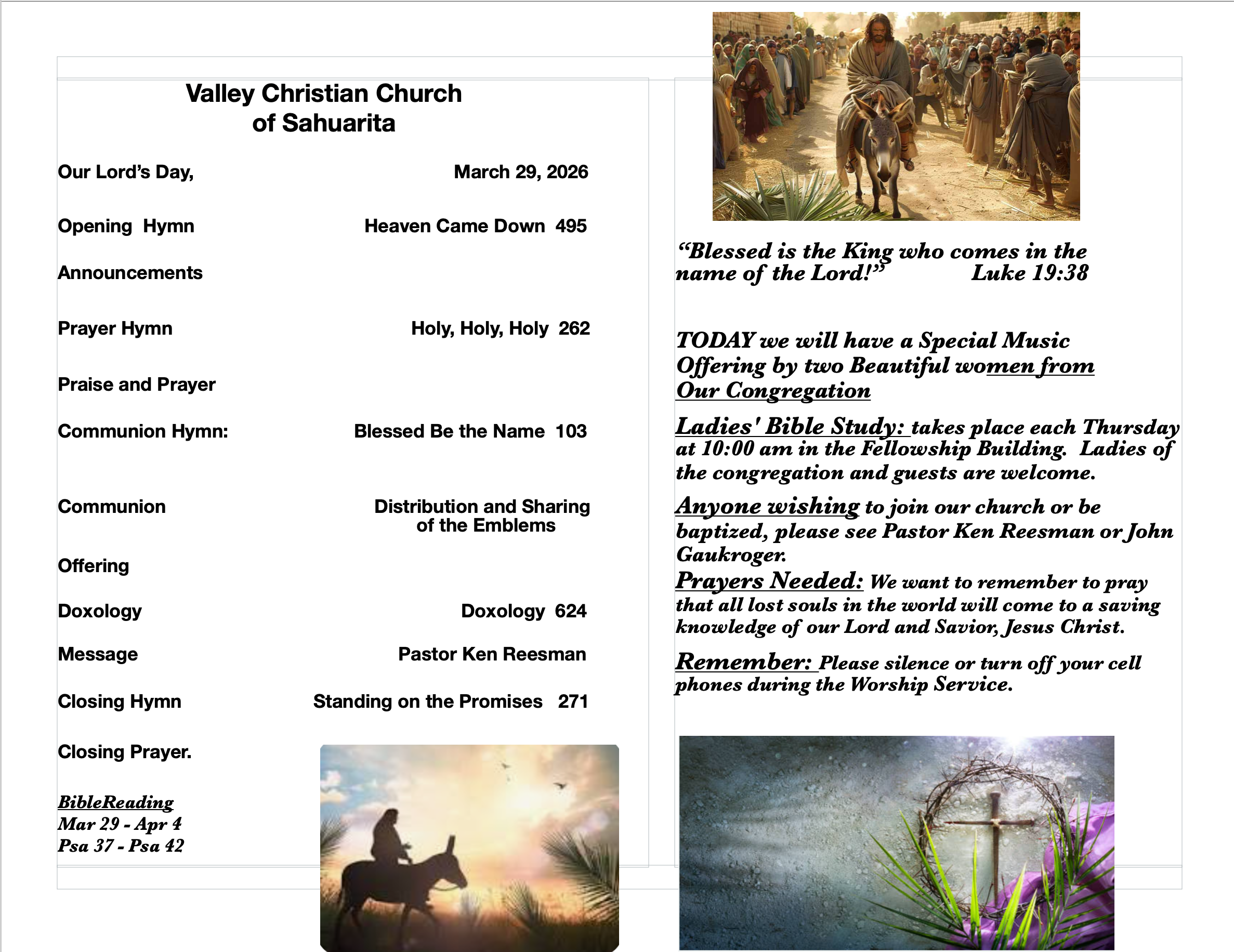 SUNDAY BIBLE SCHOOL MARCH 29, 2026